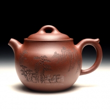 【宏福壶】道洪风格 壶身两面刻绘山水 刻绘刀法精湛 尹怀紫砂作品