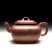 【秦权壶】宜兴名家紫砂壶 陶艺名家尹怀紫砂壶 经典紫砂壶型 朱泥刻绘紫砂壶