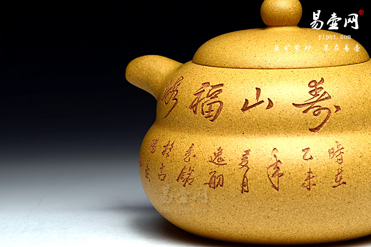 壶身正面篆刻“寿山福海”反面刻有山水图。由国家级助理工艺美术师 李卢春,号逸舠 操刀刻绘而成。