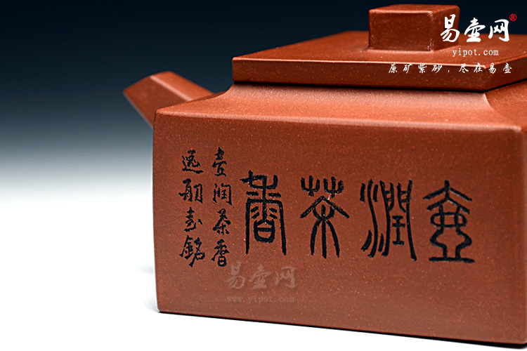 作品全部用方形展示,棱角分明,线条笔挺,绝对是逸士的最鲜明特色。壶身为长方形,壶盖与此相同,肩部过渡有线条清晰展示,愈发明了大气。壶钮为四方型,工整自然。壶嘴虽然有粗细渐变,但同样是四方外观。与此对应,壶把的形态也是笔挺大气。