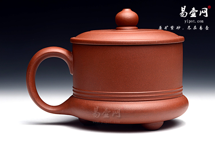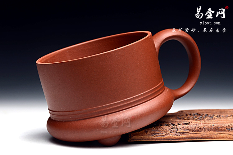 此杯通身素雅,只以简约线条为饰,杯把自杯身自然胥出,意味浓淡自如,真让人回味无穷。杯子,三足为底。鼓盖略微隆起,外观丰盈,环纹装饰更显层次分明。宝珠扭精巧别致,与壶身的造型上下相对。耳形把筋骨外露,力道十足。
