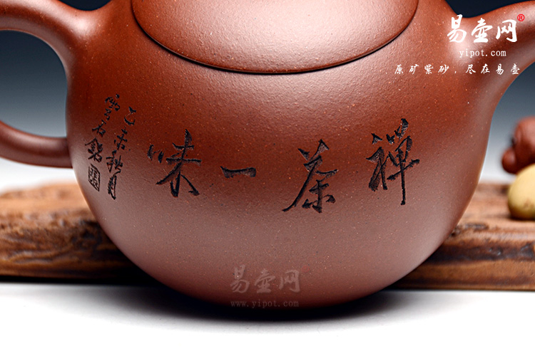 壶身装饰由老陶刻艺人云石(汪健)镌刻而成,正面刻阿氏多罗汉图,反面刻“茶禅一味”。