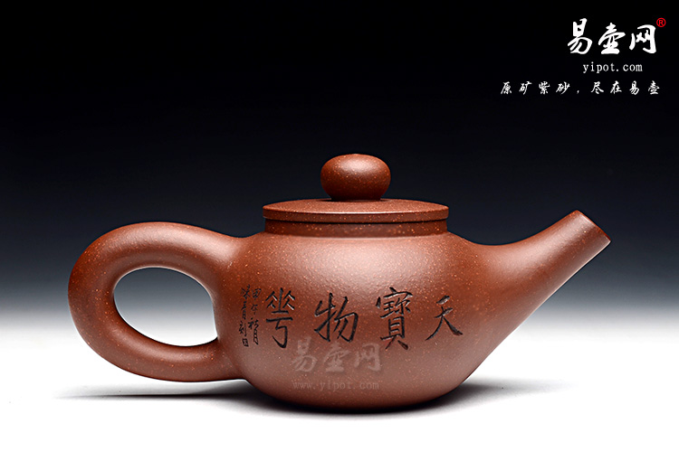 壶身由陶刻老艺人味青镌刻装饰,刻有“居士赏壶图”,反面刻“天宝物华”。