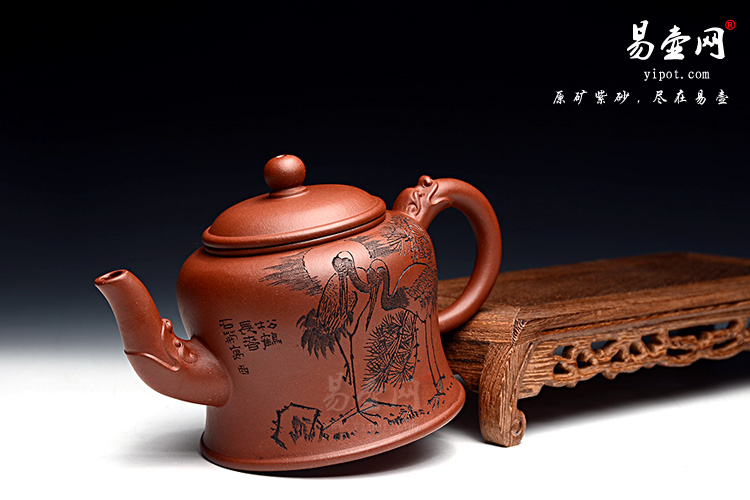 此壶有着高挑的壶身,浑圆的壶钮,浑圆的线条流畅至极,真正的圆珠壶,比例得当,压盖与壶身不可分割,点线之间见出魅力,骨肉亭匀,简练大方,制作颇见功力;弯流龙嘴胥出,精巧胥出,玲珑可爱,柔美之姿明显,龙首壶柄略微上抬之后优雅滑落而下,形成一条圆润饱满的耳形弧线,朴雅大方。一款古朴大气之作。