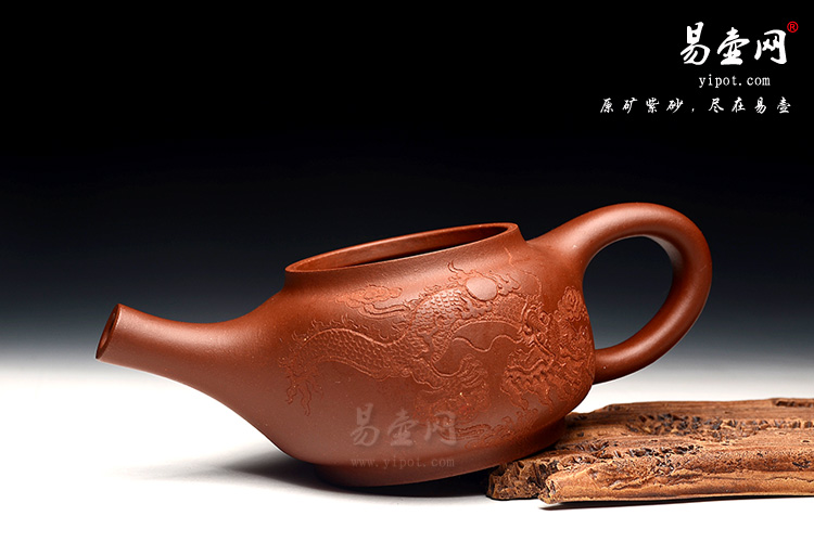 壶身正面篆刻飞龙图,阴刻阳刻相结合,难能可贵。