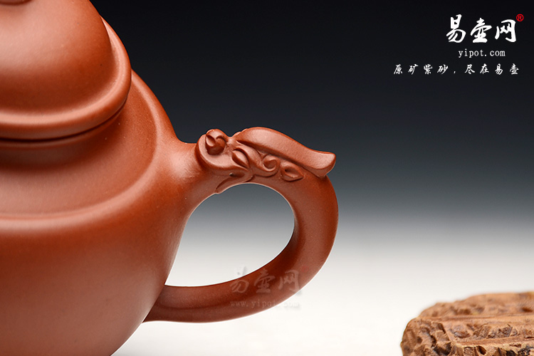 此款作品选用精品泥料淡雅清水泥,壶身采用圆珠造型,三足支撑稳重有力,龙首张开,拔地而起。龙身盘成壶体,蓄势内敛,壶嘴短圆直流,直指苍天,刚健有力,和谐有度。壶盖配以圆珠,压盖设计密不透风,寓意敛福、传福后人。壶嘴与壶把之处采用龙嘴点缀得更具活力,易壶网推荐:值得收藏!