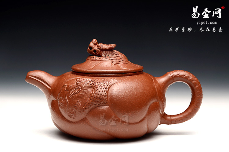 工艺精雕细镂,善于老师擅长鱼化龙作品的制作,使紫砂壶的造型更加 生动、形象、活泼,使传统的紫砂壶变成了有生命力的雕塑艺术品,充满了生气与活力。
