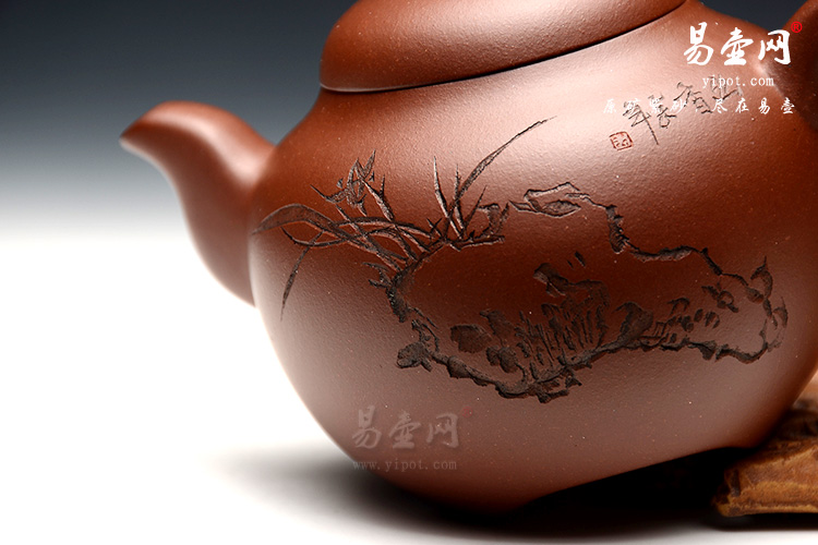 壶的正面是刻绘的是石头兰花图。壶的背面刻有“幽兰入室”,韵味十足,具有极高的的珍藏观赏价值。
