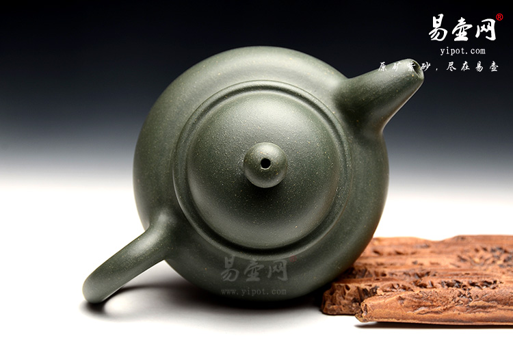 此壶为原矿民国绿泥而制,掇球壶以大、中、小三个球体重叠而成,壶身为大球,壶 盖为中球,壶钮为小球,似小球掇于大球上。其按黄金分割比例巧妙布局安排,三个圆球均衡、和谐、对比、匀正,利用点线面的巧妙组合,利用各种线形的有机结 合,达到形体合理,构成后珠圆玉润的完美性。