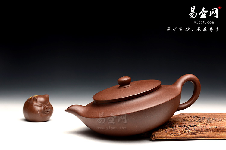 此壶选用原矿紫泥制成,色泽古朴,小巧灵动颇有小家碧玉神韵,宛若溪边江南女子。整款壶为上下两半对接而成,上边若盘下边似碗,一捺底,形若半月,清润可人。