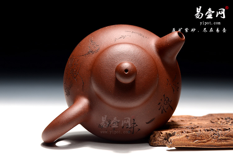 此壶身如其名,壶身饱满丰盈,手感良好。矮颈、外包口沿,底部三足,口盖齐平,盖上扁圆钮饱满而高挺,弧度自然、妥帖,流把与盖纽一致,呈现出憨厚饱满的特质。壶身正面刻“居士图”,反面铭文“茶禅一味”。观之作品赏用皆宜,值得推荐!