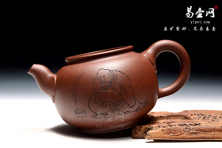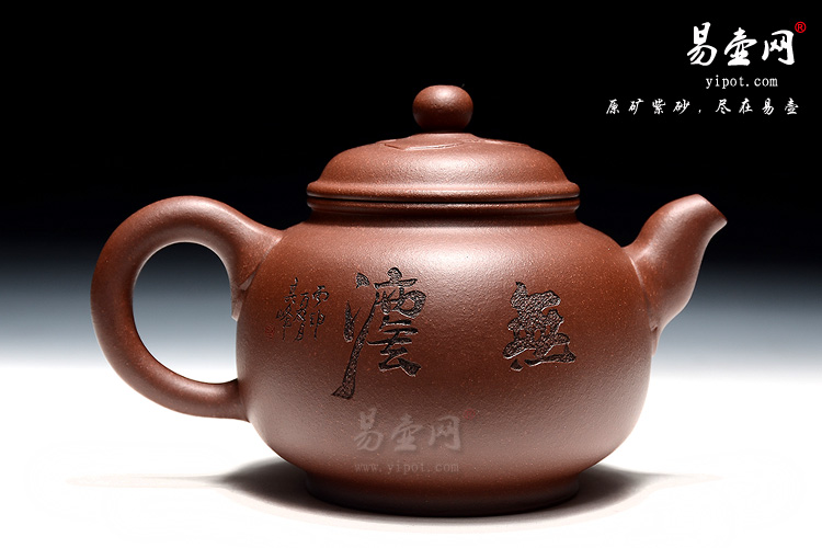 此壶的造型圆厚滑实,拥有古典美感,亦将圆器造型珠圆玉润、骨肉亭匀、比例协调、敦庞周正、转折圆润、隽永耐看的特点展现得淋漓尽致,壶身刻绘装饰,且壶身饱满挺立,口盖宽阔,三弯嘴内敛从壶身自然胥出,气息端庄,手法细腻,聚气如神。加底如泰山,更有利于壶身的稳定性,壶盖、壶嘴和壶把以花纹饰之便多了一份跳跃感,整个壶型匀称流畅,色泽古朴,通身接气,是壶中的经典之作。