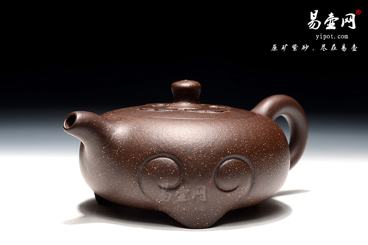 三脚如意壶,经典壶型。以中国传统文化中富有吉祥之意的如意为主题,壶盖之上、壶钮周围、三足之上以如意为装饰,整款壶以扁圆端庄为基本造型,表达浓浓真情,为世人所喜爱。三足,嵌盖,简单不失细节,耐人寻味。一弯嘴状,短而娇小,精美可爱,耳形壶把,把底与壶嘴相望,气韵绵长。整款壶显得敦实而不笨拙,端庄雅致,为大家闺秀风范。紫泥调段砂,质感强烈,喜欢的壶友莫要错过。