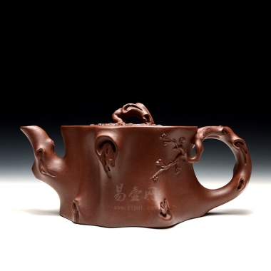 梅桩,是一款经典的紫砂壶器型,选用原矿底槽清精制而成,以梅花灿烂绽 放表现报春的主题,从壶身造型到创作原意都洋溢着无比的朝气,让人感到了春天来到的勃勃生机;壶身、流、把、盖以极富生态的梅桩、树皮及缠枝组成, 形态自然而富含力度;壶盖和壶身上的梅花采用贴花技艺手法,壶把为梅桩衍生出的枝干,伸展自然,有如自然长成,仿生性极强,充满了生命的活力;壶把和壶钮处胥出梅花,疏影横斜、暗香动人;壶身融圆、壶足挺立,壶盖穹窿,整体制作到位,徐俊英老师全手工制作的此壶做工精细,实用性观赏性都很好。