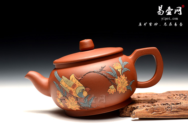 壶身泥绘有喜上枝头,寓意吉祥,泥绘美丽。