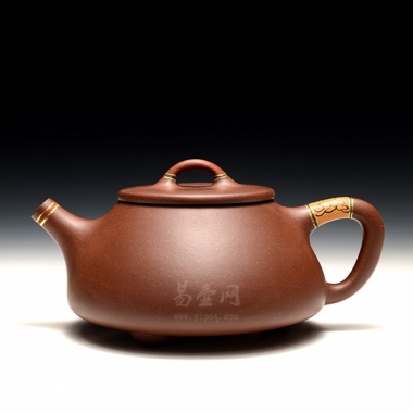 此款纯金镶嵌工艺的石瓢壶由丁小明老师制作,传统壶型特点突出,底槽清,泥质古朴。装饰设计精巧密制,可见老师手艺高超,文人气息浓厚,适合家中品茗、把玩,且升值空间大,值得购买!