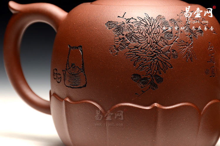 【莲韵壶】宜兴高档紫砂壶 吴秋平紫砂壶 藏壶楼紫砂壶 师从大师谭泉海、史立新 刻绘出神入化 收藏级别紫砂壶