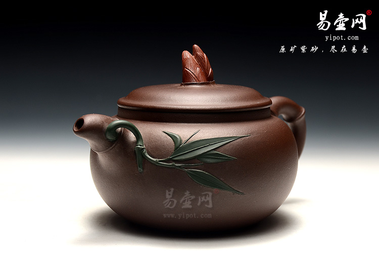 竹是中国人的情节,更是文人墨客笔下的娇子,此款祝福竹很适度地表现竹子的千姿百态,壶盖上春笋破土而出,壶嘴又与弯竹相连,竹叶栩栩如生,自然飘逸,壶身饱满而宽,圈足稳重,造型端庄大方,线条流畅自然,泥料纯正天然,适宜泡养,极力推荐。