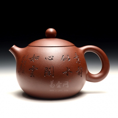 壶体一面刻绘“意静似水,心闲如云”,另一面刻绘,执莲花图。由石匋(林振良)刻绘装饰,选用此把壶用与收藏都是不错的选择,易壶网推荐!