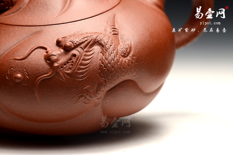 鱼化龙以神话故事为题材创作而来,作品构思巧妙,将鱼、龙以及云的装饰与壶浑然一体。此款作品经过老师的精心制作,刻绘精细,出神入画,就感觉真有一条龙在其上盘旋。壶盖上的龙头可动,十分的奇巧俏丽,整款作品制作浑厚有力,精致而不管繁琐,让人叹为观止!