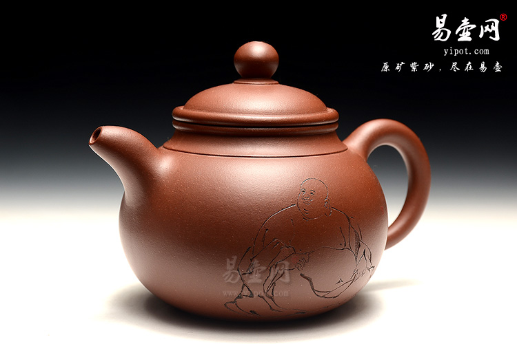 这款玉泉壶精选底槽清制作而成,古朴大方,泥色雅致亲和,辅以陶刻装饰,典雅艺美。此壶有着浑圆的壶身,半圆的壶盖,略扁的圆钮,线条流畅,比例得当,压盖略微浑厚,点线之间见出魅力,子母线口盖温和严密。壶肩较平,骨肉亭匀,简练大方,制作颇见功力。弯流嘴胥出,在端头下压,柔美之姿明显,壶柄略微上抬之后优雅滑落而下,形成一条圆润饱满的弧线,朴雅大方,加底设计将此壶衬托得更加亭亭玉立。
