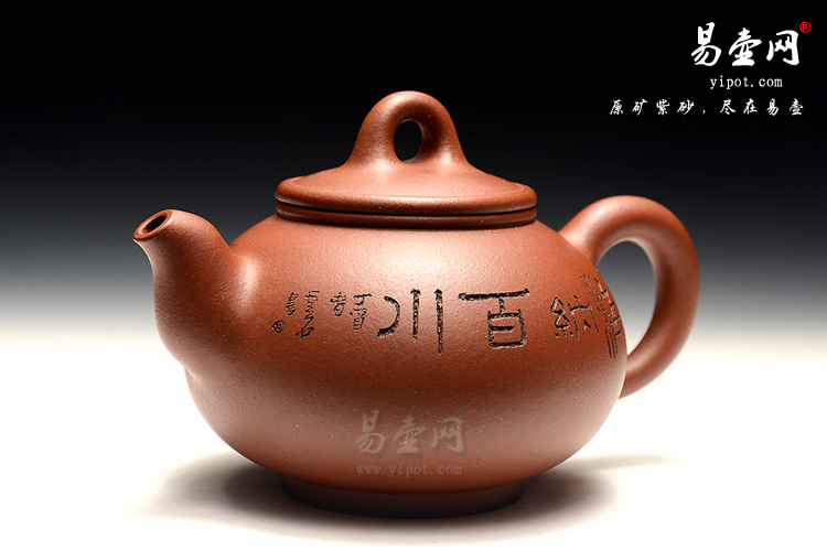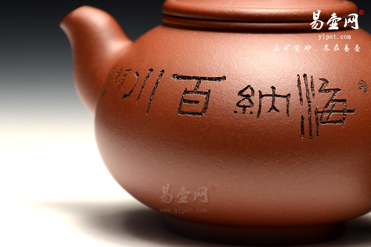 壶身一面刻绘“海纳百川”,君子海纳百川之大胸怀,另一面刻绘山水画,细腻无比,刀工精湛。