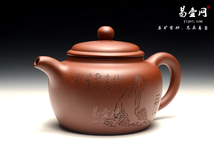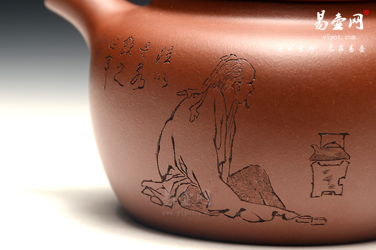 壶身由实力派陶刻名人周其峰老师刻绘而成,正面刻绘有“居士煮茗图“,小字落“注以丹泉,饮之延年”,反面铭文“有壶同享”,寓意有福同享。