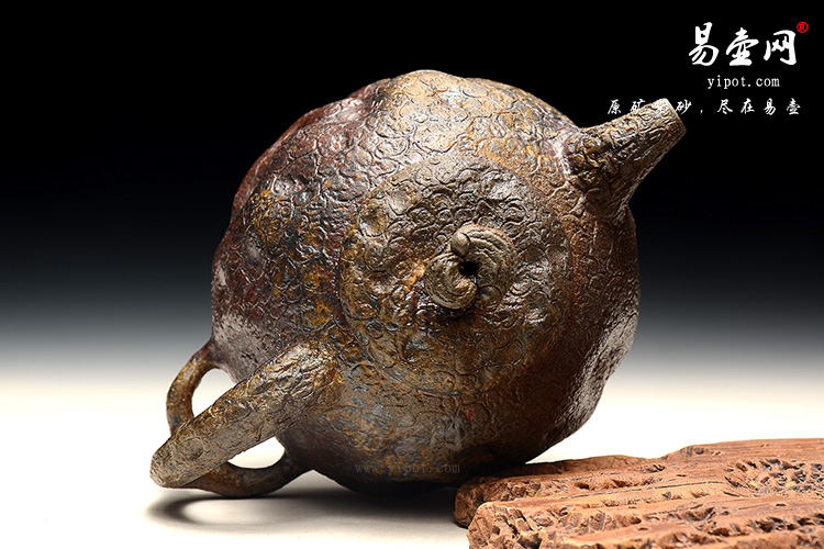 泥性:感甜嫩绵密,质坚而温润,呈近田黄色调,为江苏宜兴赵庄山系朱泥矿~黄石黄之共生矿,经挑拣练製而成,因含铁量只达6%左右,致陶之后呈“金田黄色”。