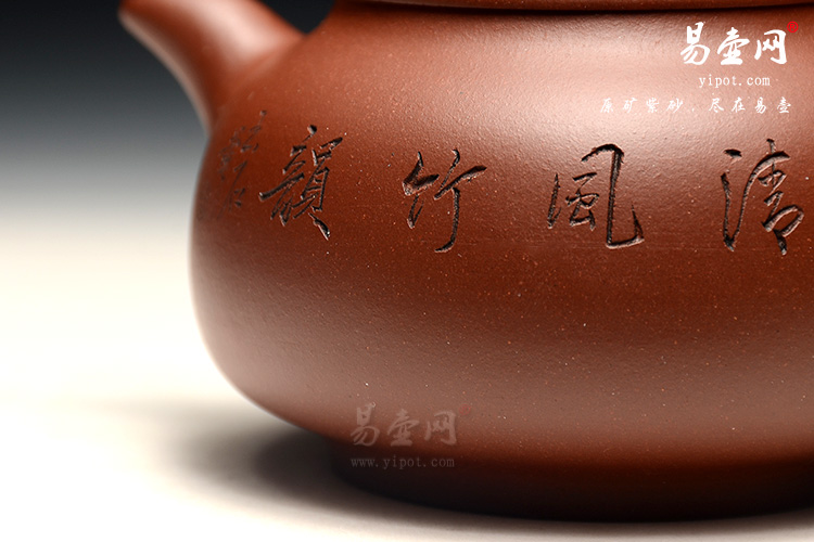 扁圆的壶身最是亮眼,柔和的线条和饱满的外形,让人由衷赞叹。截压盖的子母线也是饱满圆滑,且对接工整,自然美妙。盖上的圆珠壶钮造型美妙,与壶身的形状上下呼应。弯流壶嘴短小精悍,圈把细腻圆滑。整体上,各种圆形的拼接和线条使用,让此壶名副其实,非常圆满。