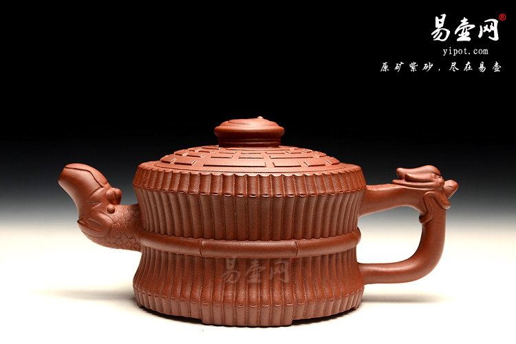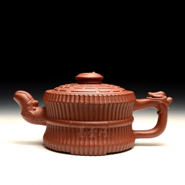 龙头一捆竹又称八卦束竹壶,其壶形设计极富中国传统文化意味,此壶壶身工整而光洁,中间的圆竹束带也形象逼真,配以作者精心挑选的泥料,其磨砂的质感更似真实的竹子,而以龙形象装饰的壶流壶把生动形象,壶盖上的伏羲八卦方位图让为整个壶增添了禅意,品茶之间好似穿越千年,故意盎然。