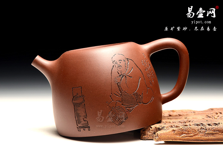 壶身刻绘“居士烹茶图”,茶可通禅,气定神闲,禅意之作。