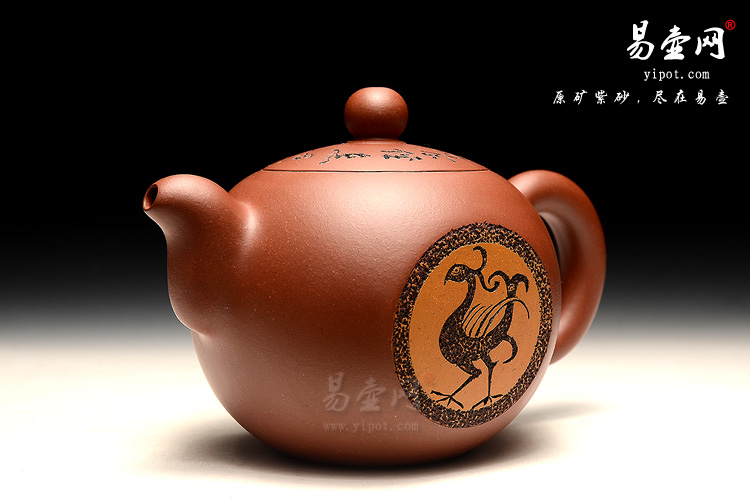 壶身一面刻绘朱雀图,另一面刻绘“益乐永康”。