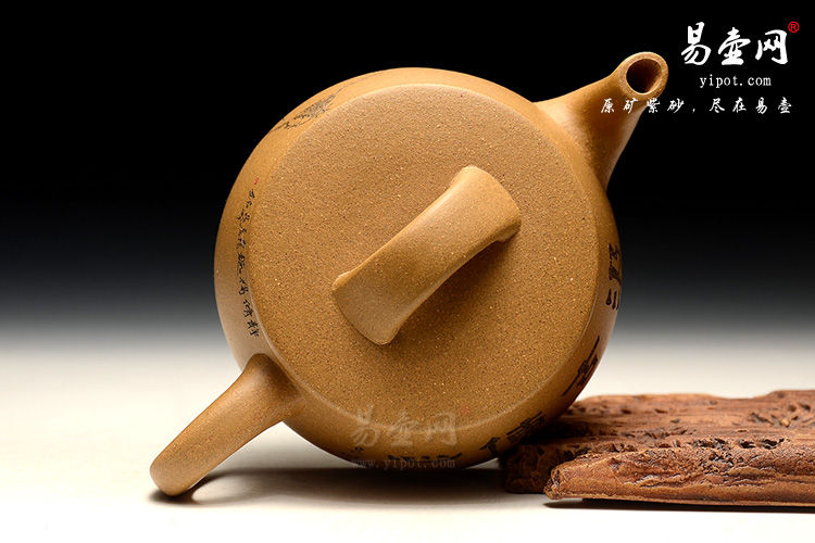 泥性:感甜嫩绵密,质坚而温润,呈近田黄色调,为江苏宜兴赵庄山系朱泥矿~黄石黄之共生矿,经挑拣练製而成,因含铁量只达6%左右,致陶之后呈“金田黄色”。