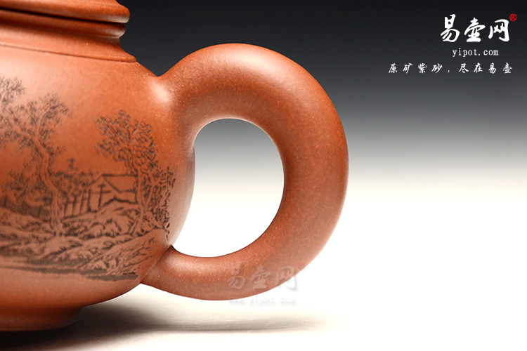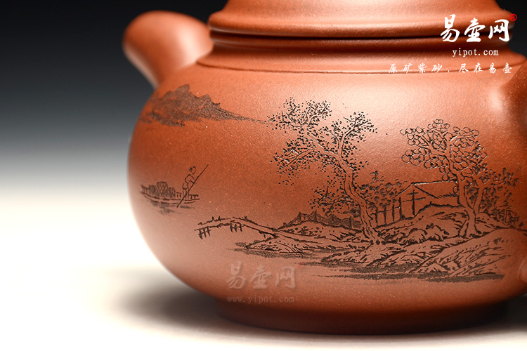 壶身正面刻有山水图,反面刻“茶熟香温”。