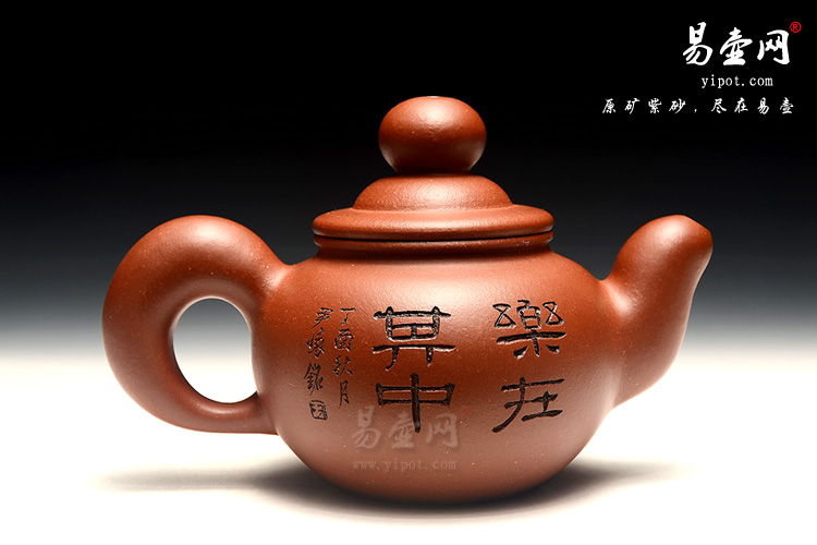 壶身一面刻绘知足常乐图,另一面刻有“乐在其中”。