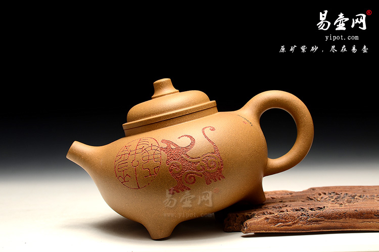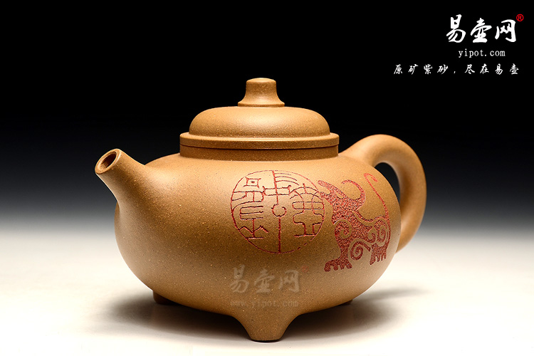 泥性:感甜嫩绵密,质坚而温润,呈近田黄色调,为江苏宜兴赵庄山系朱泥矿~黄石黄之共生矿,经挑拣练製而成,因含铁量只达6%左右,致陶之后呈“金田黄色”。