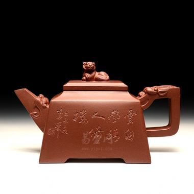整器显得十分有气势,生龙活虎,矫健有力;壶身虽光素静雅,却仍能感受到狮的威严;壶嘴与壶把呈四方状再以龙首为装饰,方与彰显的是刚劲霸气,与整器氛围很契合;狮子作钮,眼观远方,似有守护之意。如此大气非常的作品可谓震撼人心!