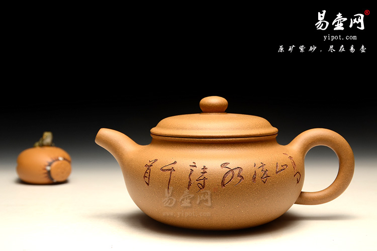 壶身刻绘“高山流水诗千首,明月清风一壶茶”,由实力派陶刻名人周其峰刻绘装饰而成。