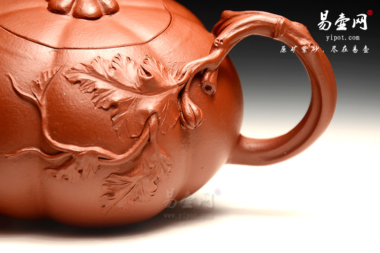 杨尚坤老师这款南瓜壶,精选原矿大红袍朱泥全手工制成,泥质细腻,古色古香,秋意浓厚。壶体挺拔而饱满,筋纹分割,内蕴充沛,线条自南瓜壶钮自然流泻,收拢于壶底;瓜叶卷裹成流,老藤弯折成把;壶体正面贴塑瓜叶、瓜蔓,立体生动,景舟杯铜奖获得者,实力派全手工朱泥制壶,老师制壶工艺精湛!