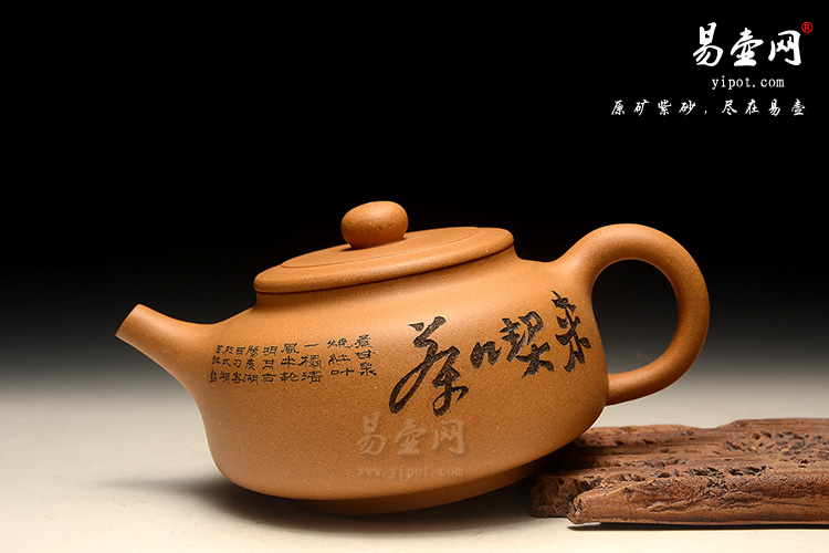 泥性:感甜嫩绵密,质坚而温润,呈近田黄色调,为江苏宜兴赵庄山系朱泥矿~黄石黄之共生矿,经挑拣练製而成,因含铁量只达6%左右,致陶之后呈“金田黄色”。