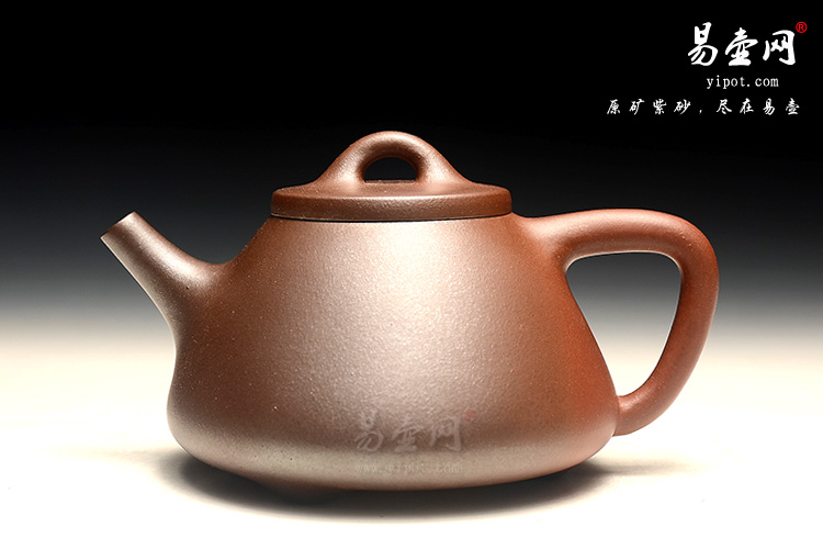此款经典的子冶石瓢,壶身呈梯形,曲线柔和流畅,造型浑厚朴拙,风度大气。壶底部三足形如围棋子,足与底面结合清晰利落。壶体表面线条均匀流畅。直流壶嘴,简洁见力度,为暗接处理,溶于壶身整体。
