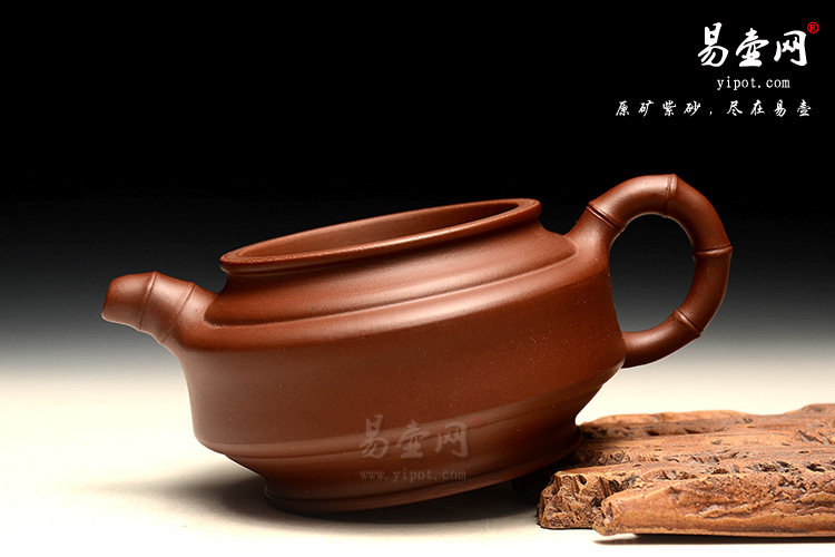 此壶为传统壶型,传承经典,端庄雅致,不失浑厚朴实,质拙中显高意,值得拥有;的流把竹节造型,一弯嘴三节竹节装饰而成,弧钮散开在略微鼓起的壶盖之上,盖沿明显厚于口沿,形成强劲的压盖之势,耳形提把为三节竹节装饰,两条清晰的线条从壶腹中间穿过,似是一条宽阔的腰带横亘其中;加底,与壶口口径一致,整款壶竹韵清疏,竹叶自壶钮清浅胥出,贴于壶盖之上,再也无其他装饰,韵味不失,毫无矫饰。