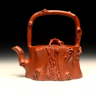 壶身、流、把、盖全部是用极富生态的梅桩、树皮及缠枝组成, 形态自然而富含力度;壶上梅花采用贴花技艺手法,壶嘴壶把为梅桩衍生出的枝干,伸展自然,有如自然长成,仿生性极强,充满了生命的活力;壶把和壶钮处胥出梅花,疏影横斜、暗香动人;壶身融圆、壶足挺立,壶盖穹窿,整体制作到位,此壶做工精细,实用性观赏性都很好。