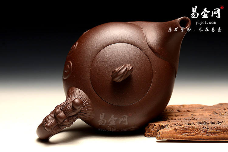 此壶大气十足,器型设计大胆新颖,小品壶、大气势。壶身装饰为浪花,扭作祥云装,盘桓在壶身之上,古朴大气、祥云围绕,别样美观。壶把为龙,气势非凡。