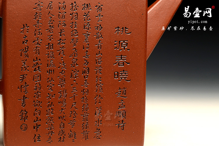 壶身一面刻绘有山水画,另一面刻:赵孟頫《桃源春晓》