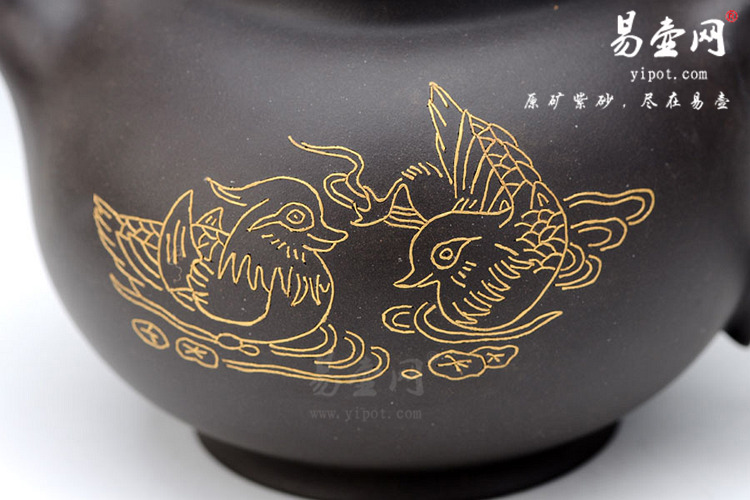 春江水暖鸭先知。”苏轼的一首《惠崇春江晚景》给了作品莫大的灵感,将一幅动静和皆的画面融入到紫砂艺术之中,让人体会中国博大的文化。原矿黑泥手工制作而成,黑泥的色泽似乎又增添了份神秘,器型稳重不失优雅,壶钮设计成鸭的造型,而壶身以镶金手法制成鸭子,鸭子戏水的活泼动态如同一幅呈现在我们面前。于文化于工艺此款作品都为不错的选择!