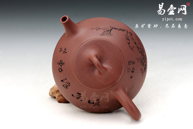 原矿红皮龙泥料,用料上乘,极易泡养。壶身大大张开的“人”字敦实有力,的流把三处自然过渡,若流水般毫无凝滞之感,三只乳足支撑,精工雅致。此壶壶体刻绘“喜上梅梢”图,似有暗香袭来,与另一面“暗香浮动”呼应,刀笔俊朗有力,质感十足。小小的壶体诗画尽显,艺术感强烈,更令人畅游其中,留而忘返。端正挺拔,刻绘很精细的石瓢怎能不让人喜欢。
