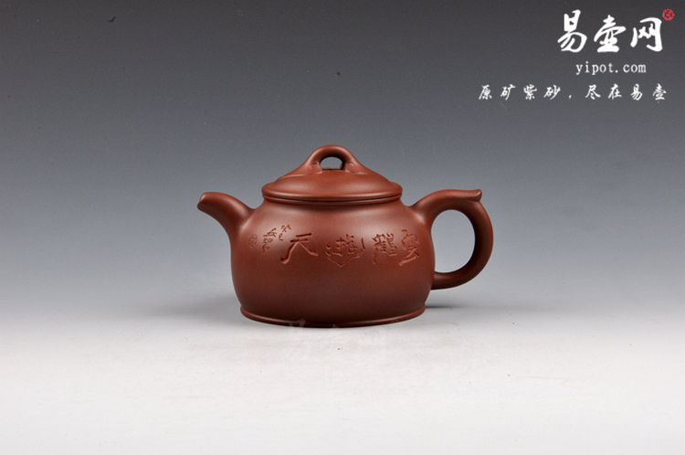 此壶选用原矿底槽清泥料精制而成,器型简洁古朴,端庄大方,给人一种心里安静而稳定的感觉;此壶造型婚后饱满,稳重厚实,整体制作工艺讲究,简单大方,压盖子母线严丝合缝,微鼓的盖面上贴一枚如意造型桥形钮,一弯流暗接胥出,嘴口精巧圆润,聚而有力,出水迅猛;耳形飞把随壶身之势,持握舒适;此壶壶身由陶刻大师徐安碧亲自操刀篆刻。