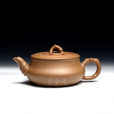 泥性:感甜嫩绵密,质坚而温润,呈近田黄色调,为江苏宜兴赵庄山系朱泥矿~黄石黄之共生矿,经挑拣练製而成,因含铁量只达6%左右,致陶之后呈“金田黄色”。