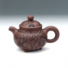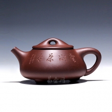 【子冶石瓢壶】沈雅静紫砂壶 实力派紫砂陶艺家 原矿底槽清泥料 全手工紫砂作品 刻绘梅花报春